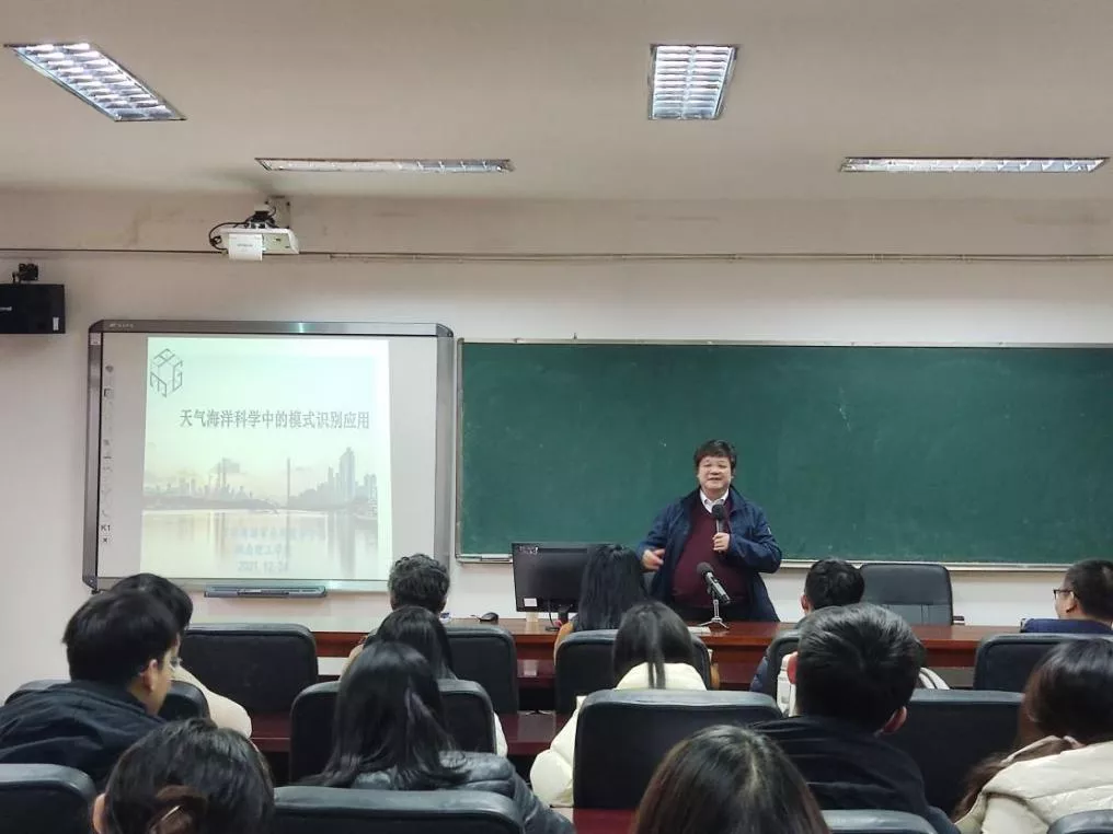 接下来,姚正安从天气海洋科学中的模式识别应用切入,通过具体讲解国内外相关气象局对气象灾害特别是台风的研究预测,来讲解数学和大数据如何在天气和海洋科学中发挥关键作用。随后他给大家解读了偏微分方程在天气预报中的研究与应用。同时,姚正安也鼓励同学们积极科研,开拓进取,勇于创新。