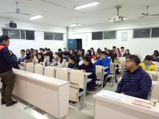 校园网讯 4月12日晚,威廉希尔于5408教室召开第一场考研经验交流会,本场交流会主题为跨专业考研;威廉希尔经理孙明保、党总支书记阳鲁平,党总支副书记易政群,副经理周立仁和13、14级辅导员何铁勇出席了交流会;本次交流会邀请部分公司13级考研成功的同学为公司的考研意向生分享考研经验。