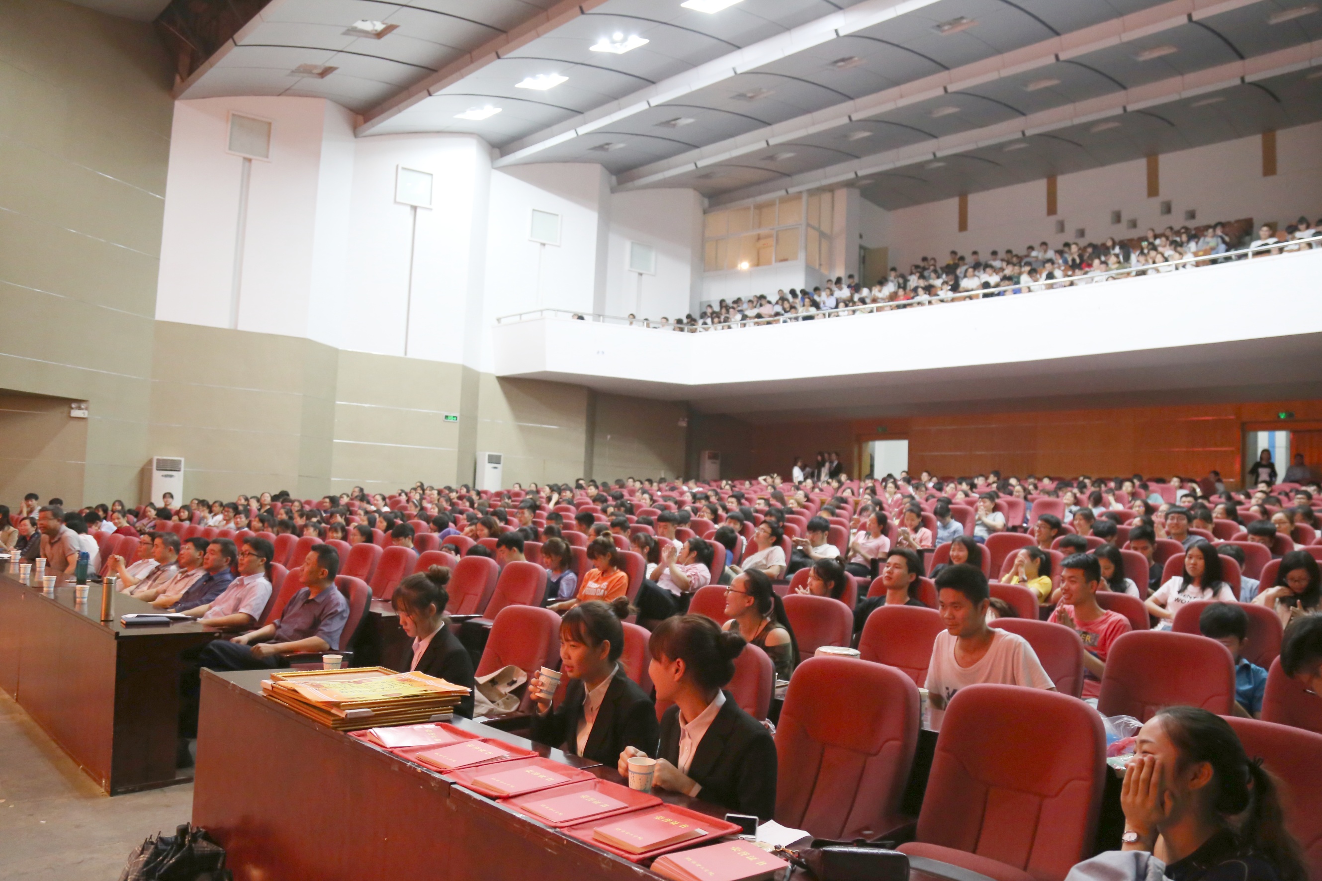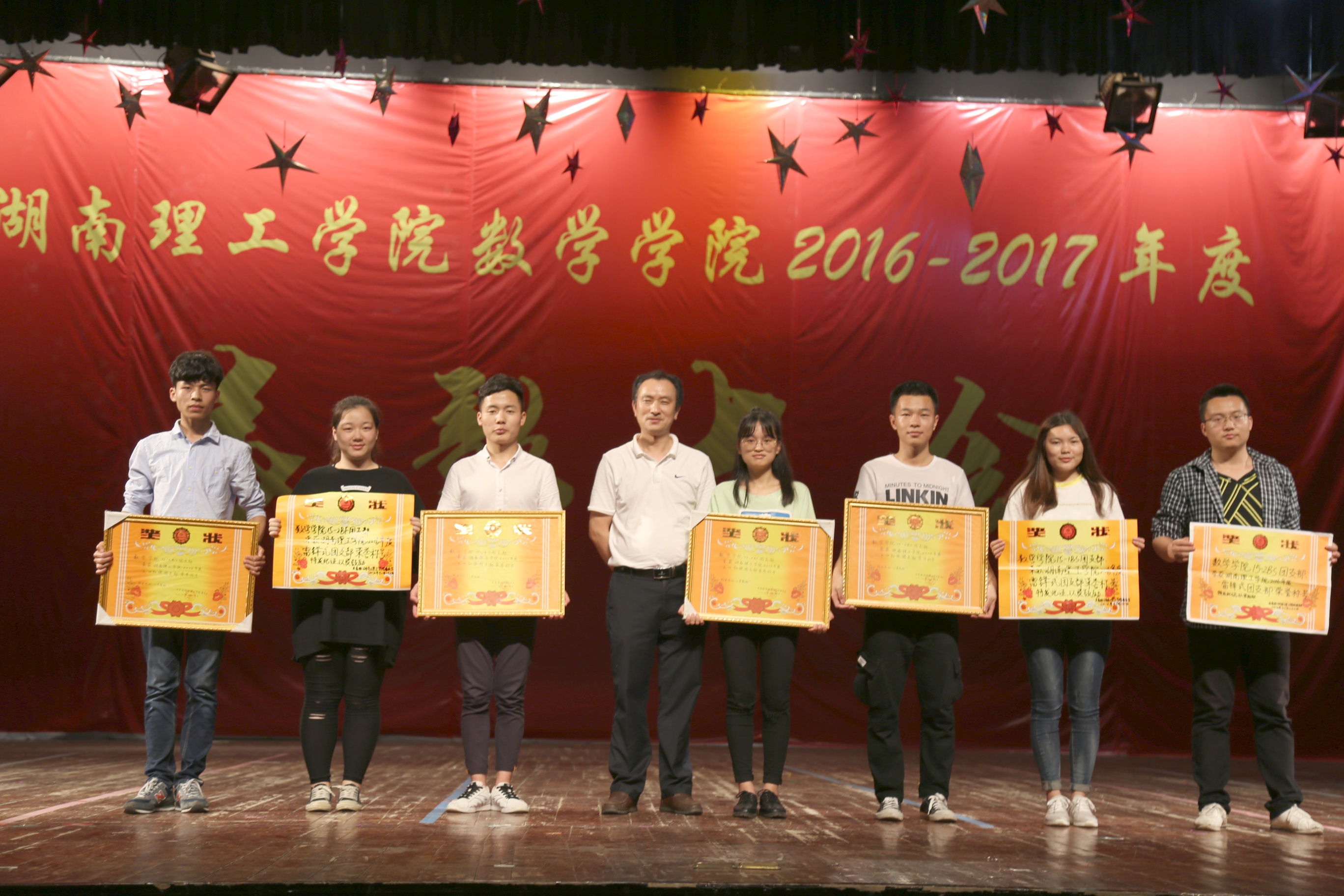 本站讯 5月22日晚,2016-2017年度表彰大会于东院演播厅隆重举行。院领导孙明保、阳鲁平、周立仁、丁卫平、易政群及学院部分老师、辅导员出席本次表彰大会。13、14、15级获奖者,16级全体员工参加此次大会。
