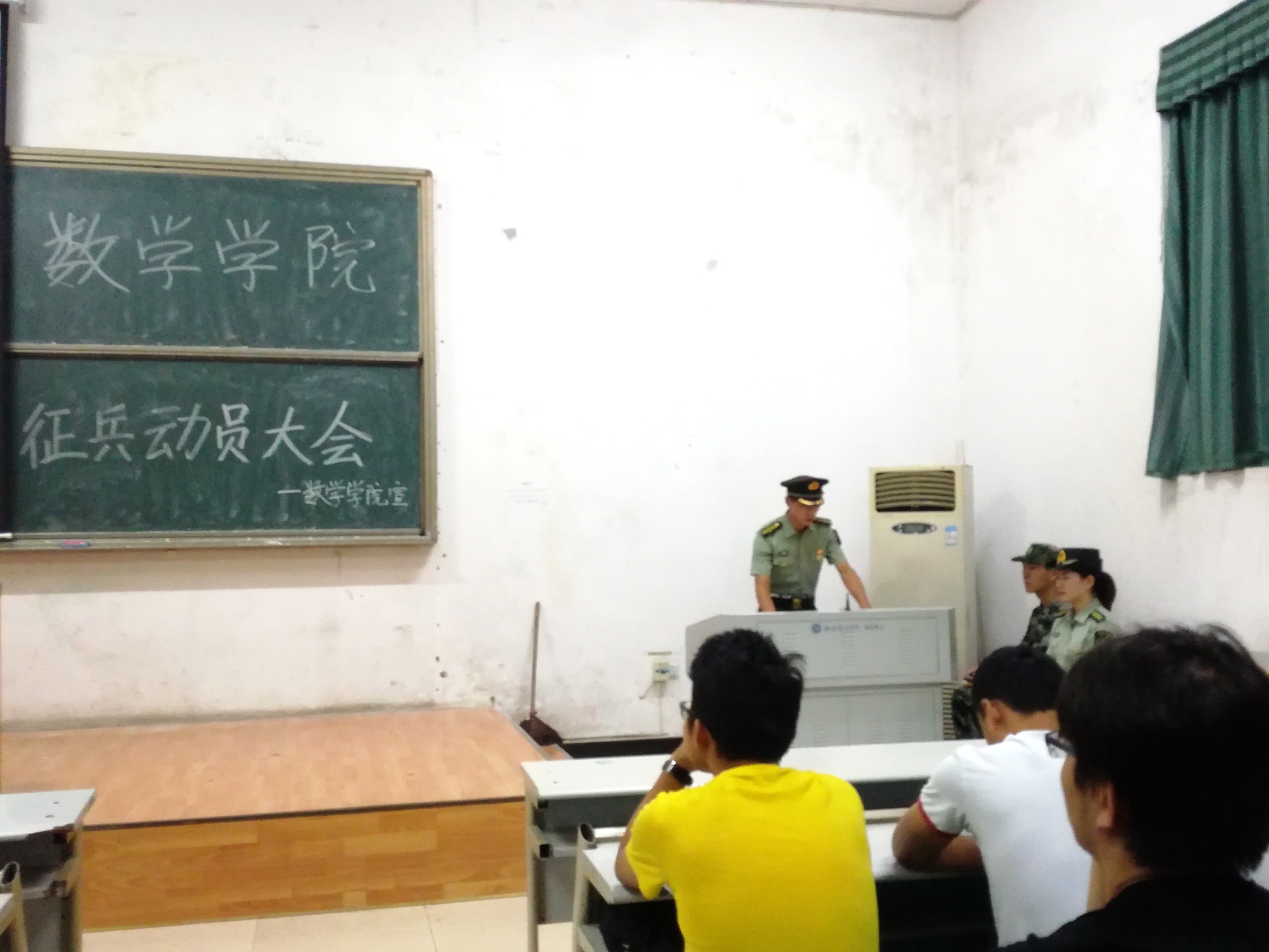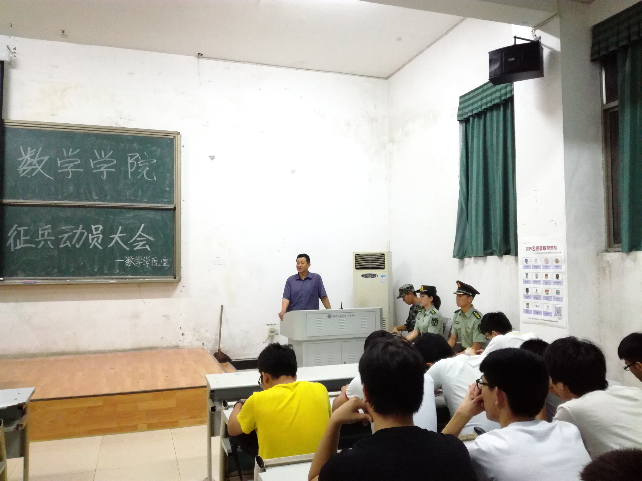 本站讯 6月11日,威廉希尔于7号教学楼7T2教室召开征兵动员大会,公司党总支副书记易政群,团总支书记、15级辅导员傅丹,学工办主任、16级辅导员蔡奕出席,民兵连连长宋宏科,副连长王偲瑶宣讲,威廉希尔全体男生参与本次会仪。